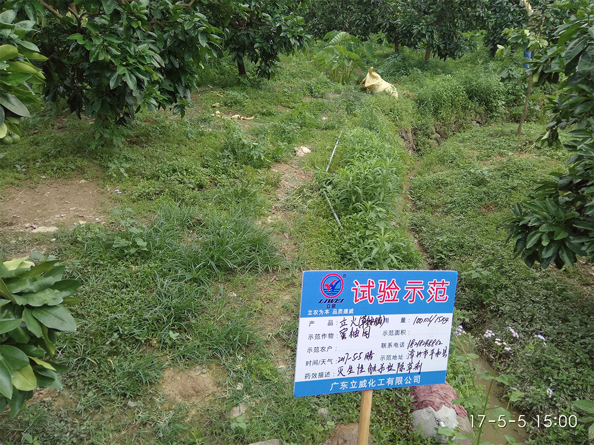 試驗(yàn)簡(jiǎn)要:立火對(duì)牛筋草、馬唐和小飛蓬等惡性雜草防治效果的試驗(yàn)示范。試驗(yàn)地點(diǎn)選擇在平和縣的蜜柚園。用藥時(shí)間是下午3:00。