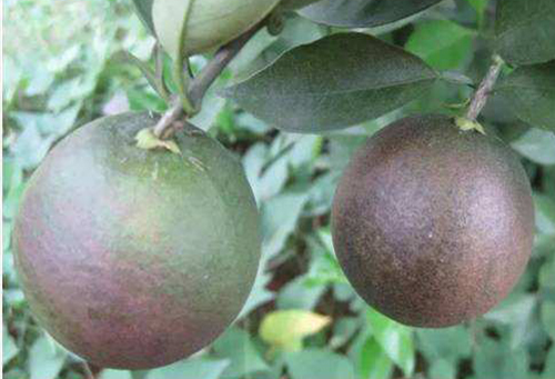 成螨和若螨群集在葉面、果實和枝梢上,刺破表皮細胞吸食營養(yǎng)液。葉片和果實受害后油胞被破壞,內(nèi)含芳香油溢出,經(jīng)氧化而呈黑褐色,果成黑皮果,葉成銹葉。由于黑皮果皮粗糙皸裂,無正常果色,大大降低果實的外觀和品質(zhì),失去商品價值。