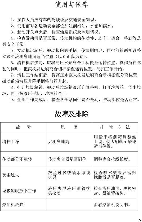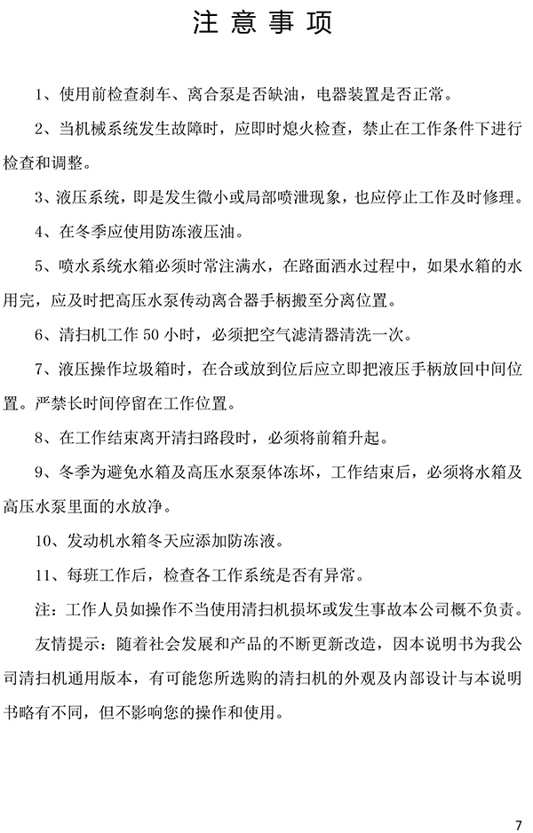 都市機(jī)械自行式路面清掃機(jī)使用說(shuō)明