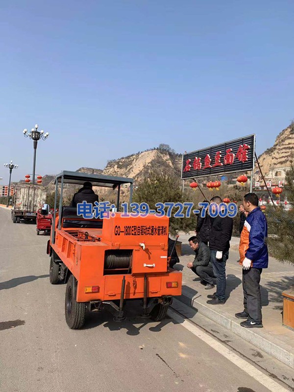 20190312植樹節(jié),山西省呂梁市興縣**工程管理處劉老板與河南都市機械設(shè)備有限公司喬師傅0372-8158609共同研發(fā)出來新型GQ-1800E型自驅(qū)動通水管道清理機(GQ-1800E型自驅(qū)動機械式疏通機)軸粗力大,高壓射水,拉泥清淤多用途疏通機,歡迎大家圍觀指導(dǎo)合作!