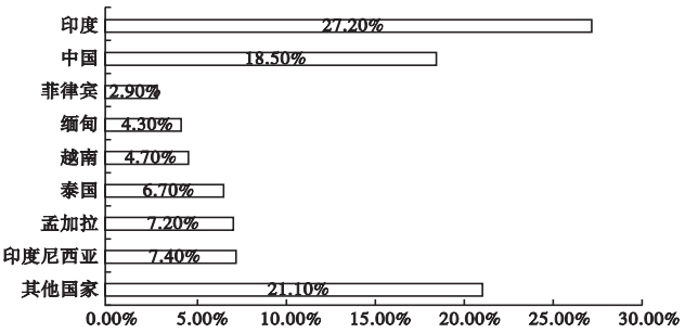 圖1 2018年全球水稻種植情況