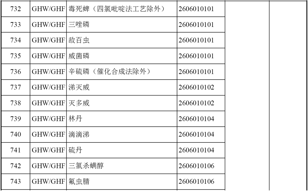 環(huán)境保護綜合名錄(2021年版) 中有關(guān)農(nóng)藥部分: