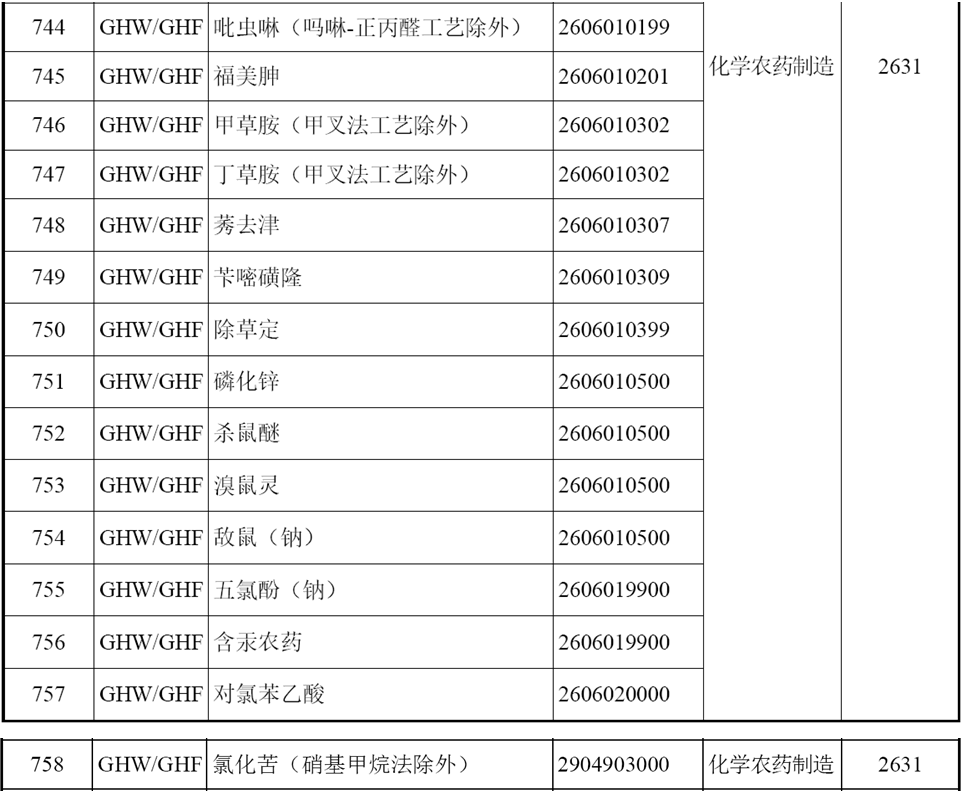 《環(huán)境保護綜合名錄(2021年版)》(化學(xué)農(nóng)藥制造)