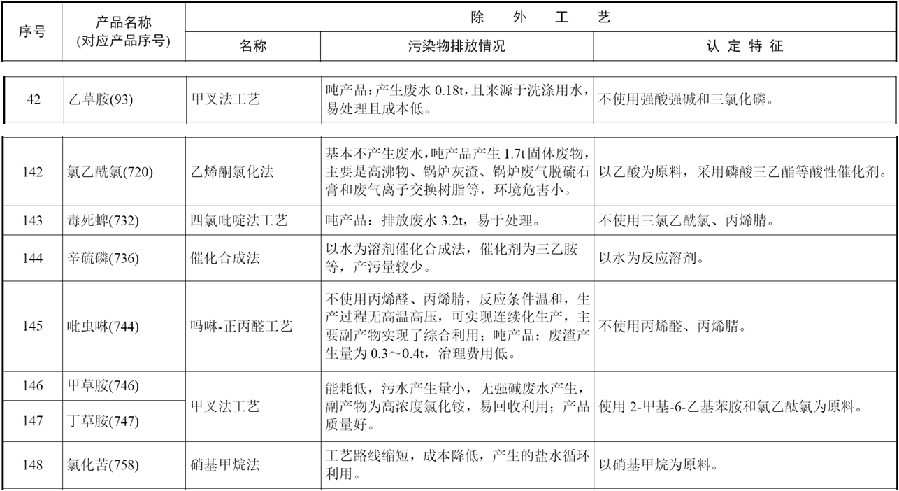 附表:“高污染、高環(huán)境風險”產(chǎn)品名錄中部分產(chǎn)品的“除外工藝”說明
