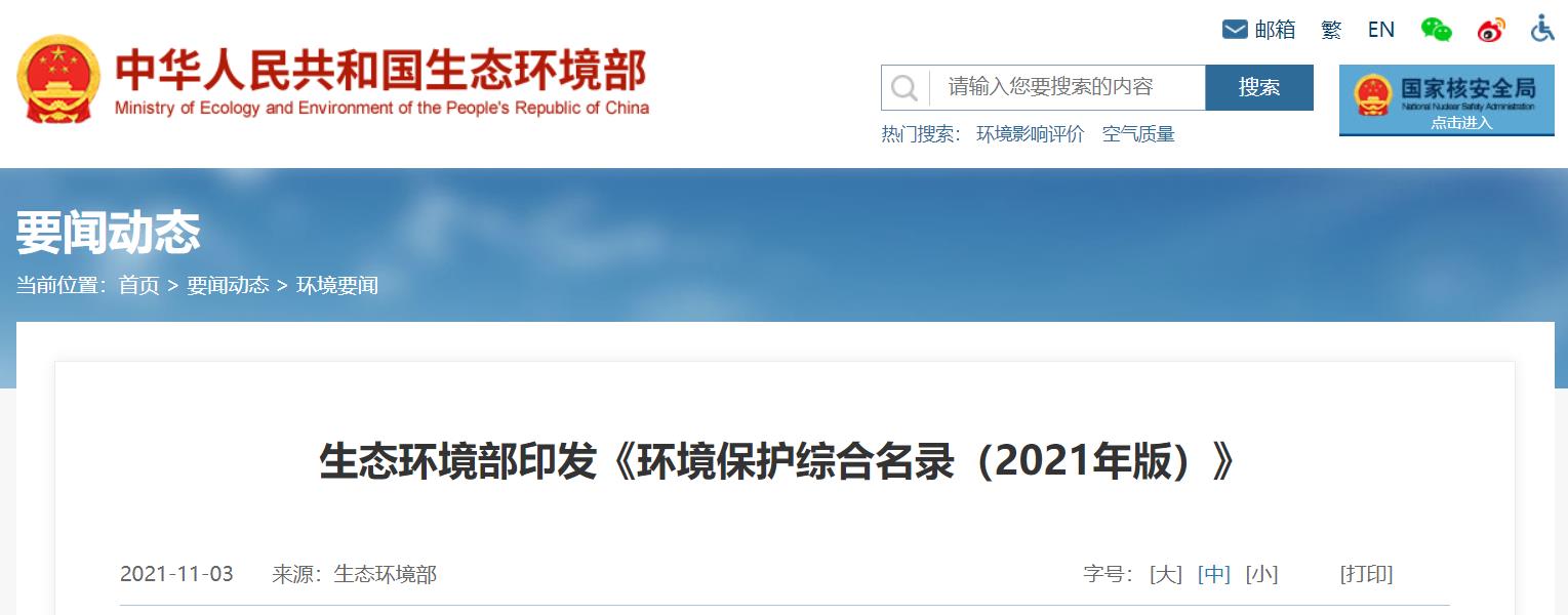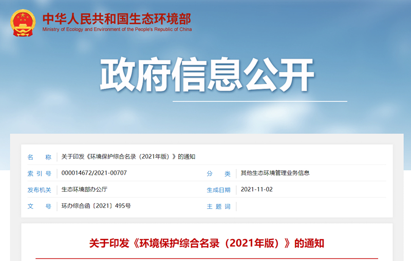 生態(tài)環(huán)境部印發(fā)《環(huán)境保護綜合名錄(2021年版)》