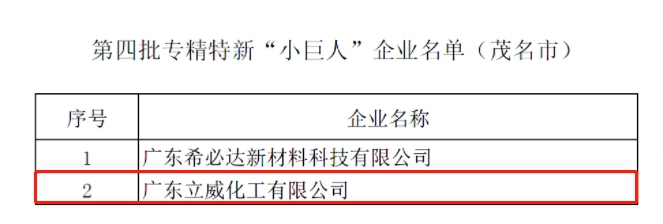 近日,國家 級第四批專精特新“小巨人”企業(yè)名單發(fā)布,廣東立威化工有限公司順利入選。