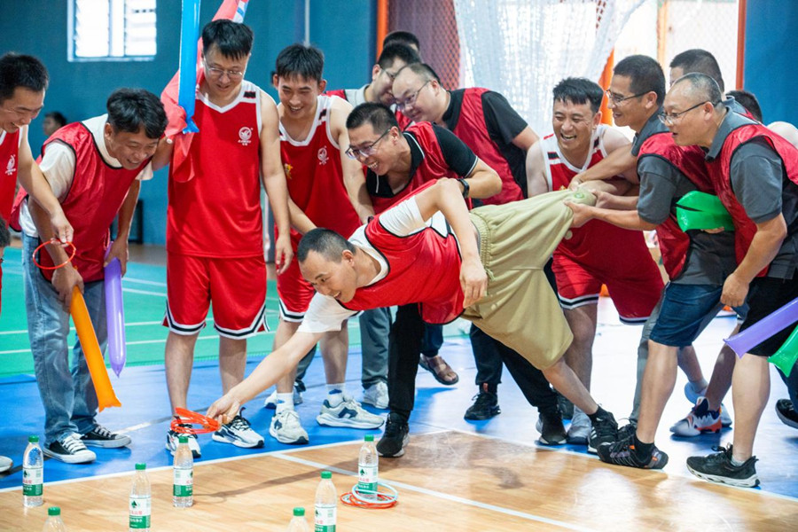 活動(dòng)伊始,為了幫助大家充分熱身,調(diào)動(dòng)起積極性,團(tuán)隊(duì)精心設(shè)計(jì)了一系列有趣的熱身游戲?!疤兹Α庇螒蛑?,大家紛紛施展自己的技巧,試圖將手中的圈圈套中目標(biāo),現(xiàn)場(chǎng)歡聲笑語(yǔ)不斷?!捌姹鴬Z寶”游戲則考驗(yàn)了大家的觀察力和團(tuán)隊(duì)協(xié)作能力,隊(duì)員們?cè)谝?guī)定時(shí)間內(nèi)迅速找到指定物品,展現(xiàn)出了高效的團(tuán)隊(duì)配合。而一分球和三分球投籃比賽,更是讓大家提前感受到了籃球的魅力和競(jìng)技的氛圍,不少員工都展現(xiàn)出色的投籃技巧,贏得了陣陣掌聲。